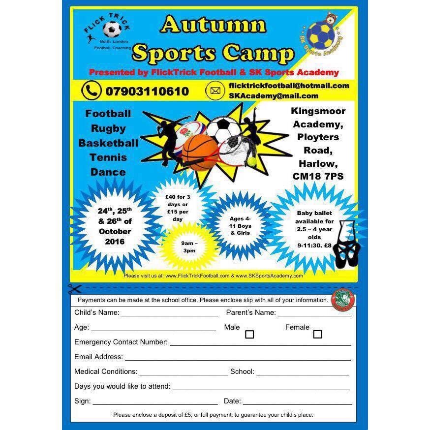 During this Autumn Half-Term on the 24th, 25th & 26th of October SK Sports, FlickTrick Football and Harlow Town Rugby Club will be delivering its Second Multi-Sports Camp at Kingsmoor School AND this time with the Inclusion of Dance specialist Miss Knelmes from Kingsmoor Academy, qualified in ISTD in Ballet, Tap and Modern Theatre.